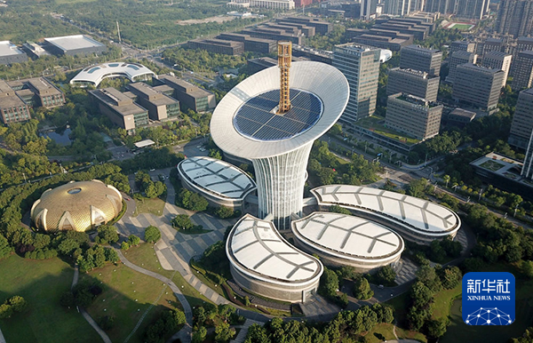 位于武汉光谷未来科技城的武汉新能源研究院大楼(2022年7月9日摄,无人机照片)。新华社记者 程敏 摄