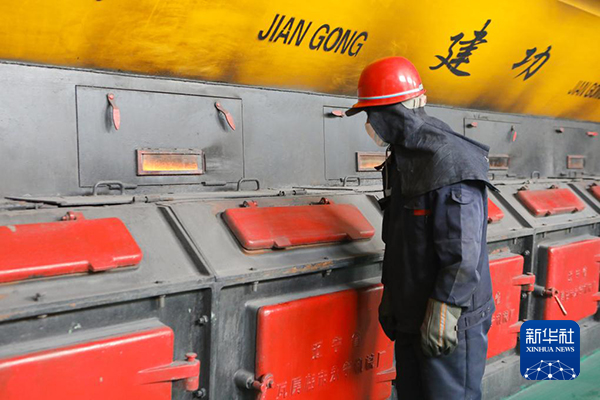 12月19日,沈阳东泰热源的工作人员对热水锅炉进行巡视检查。新华社记者 陈为 摄