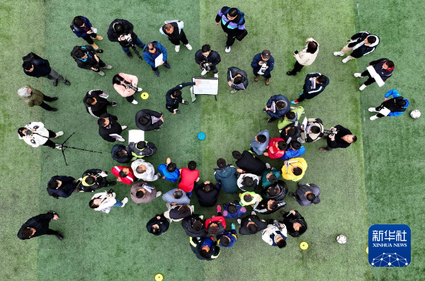 12月12日,学员参加“学转英超”基层足球教练培训项目(无人机照片)。新华社记者 刘续 摄