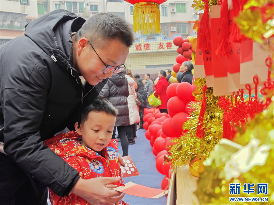 12月29日,在赤水市市中幼儿园,亲子体验猜灯谜,一起迎接新年。新华网发(张浪 摄)