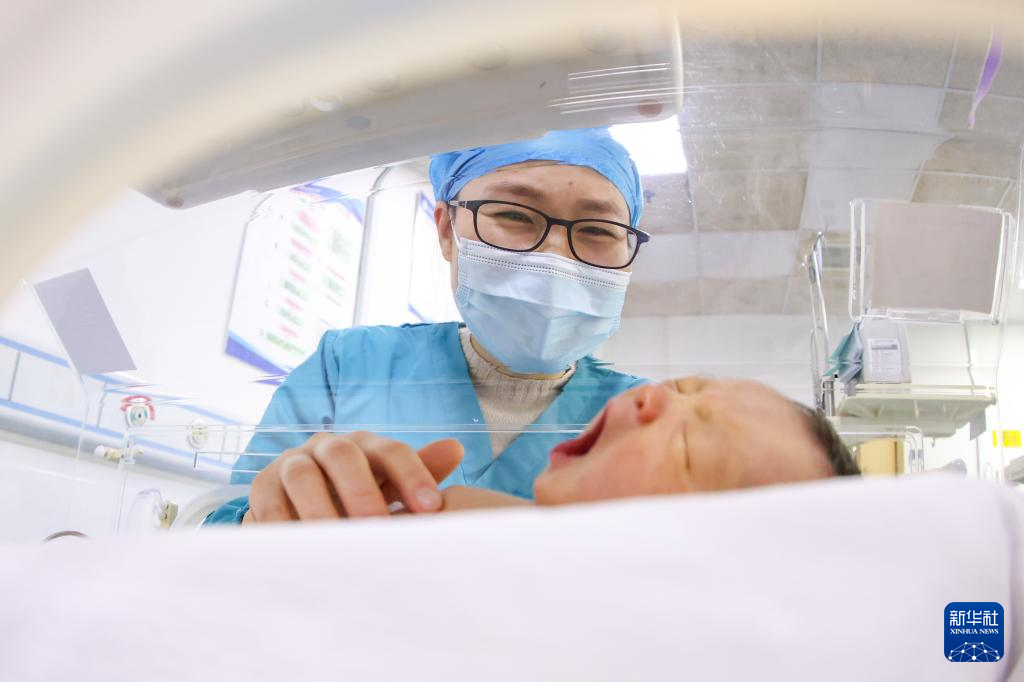 1月2日,在贵州省铜仁市玉屏侗族自治县人民医院新生儿科,医护人员在护理新生儿。新华社发(胡攀学摄)