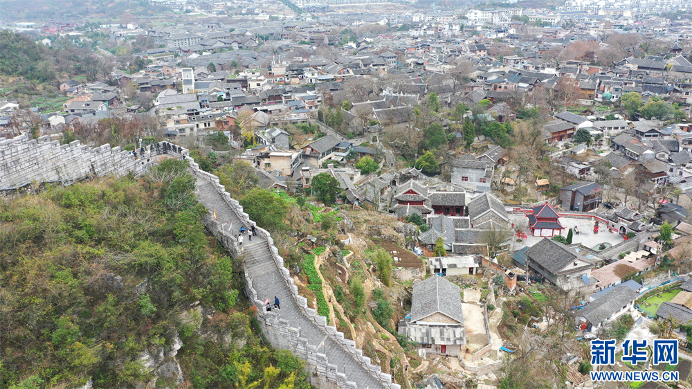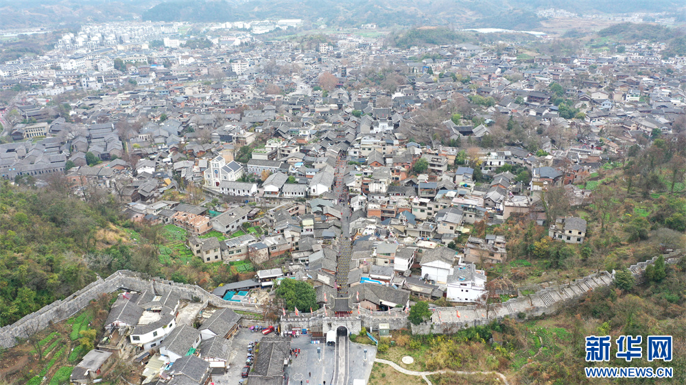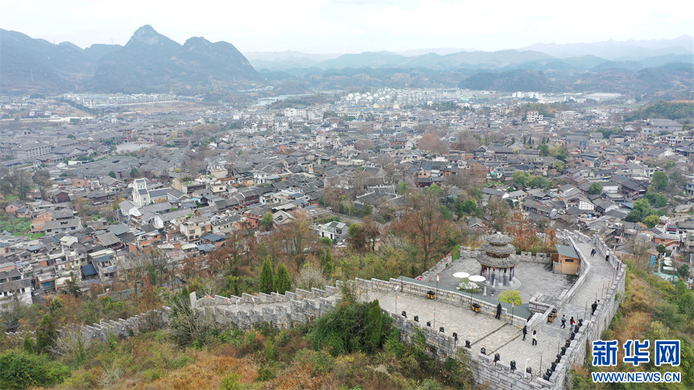 1月14日航拍的贵阳市花溪区青岩古镇一景。新华网 周远钢 摄
