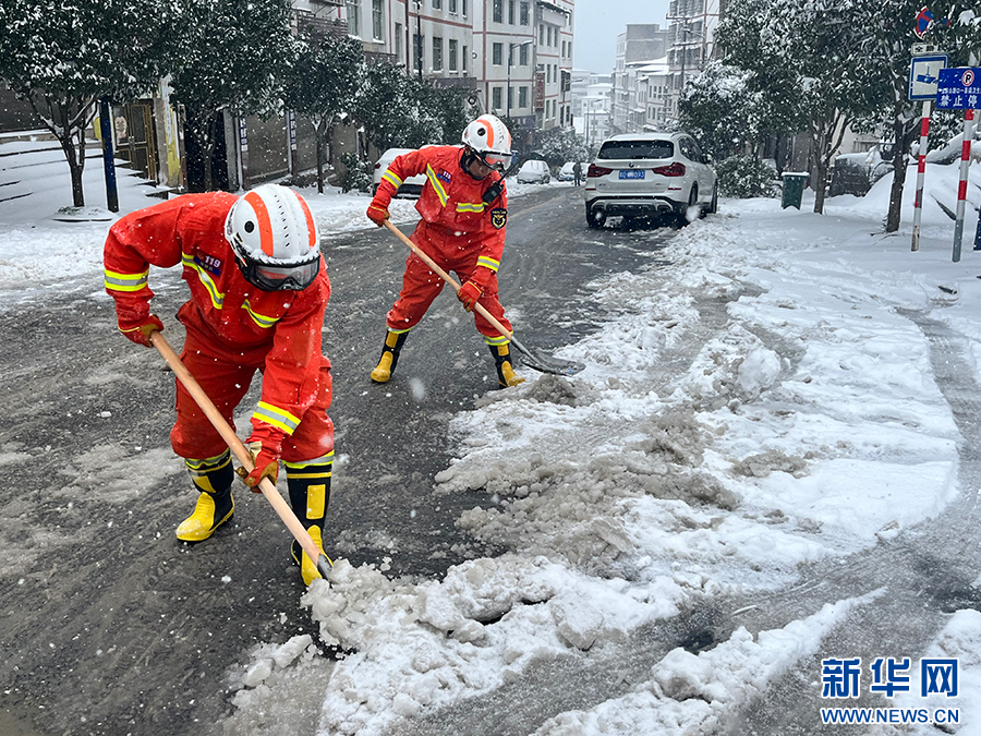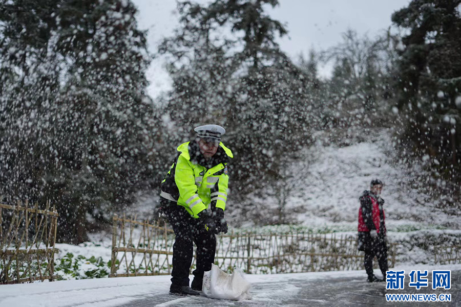1月22日,贵州万山迎来2024年第一场雪,多部门联动开展除雪工作。新华网发(姬璐 摄)pagebreak