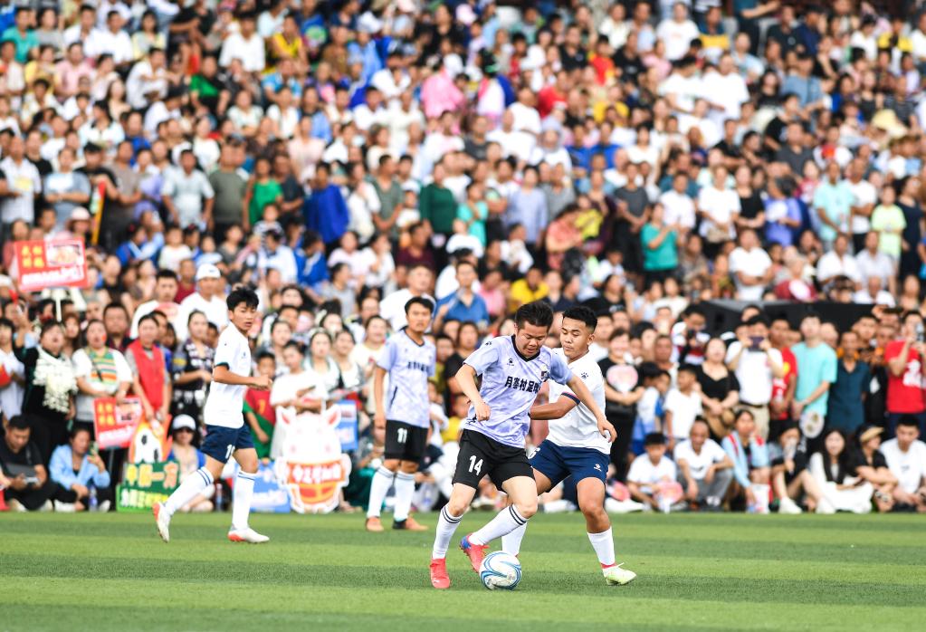 ↑2023年6月17日拍摄的贵州“村超”足球比赛现场。