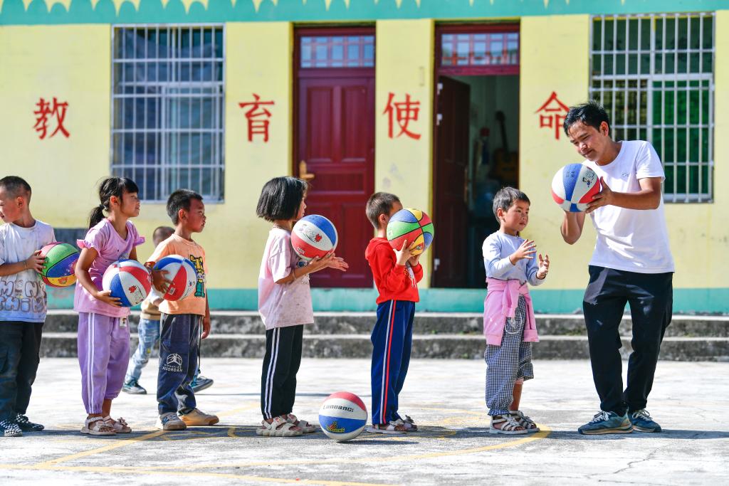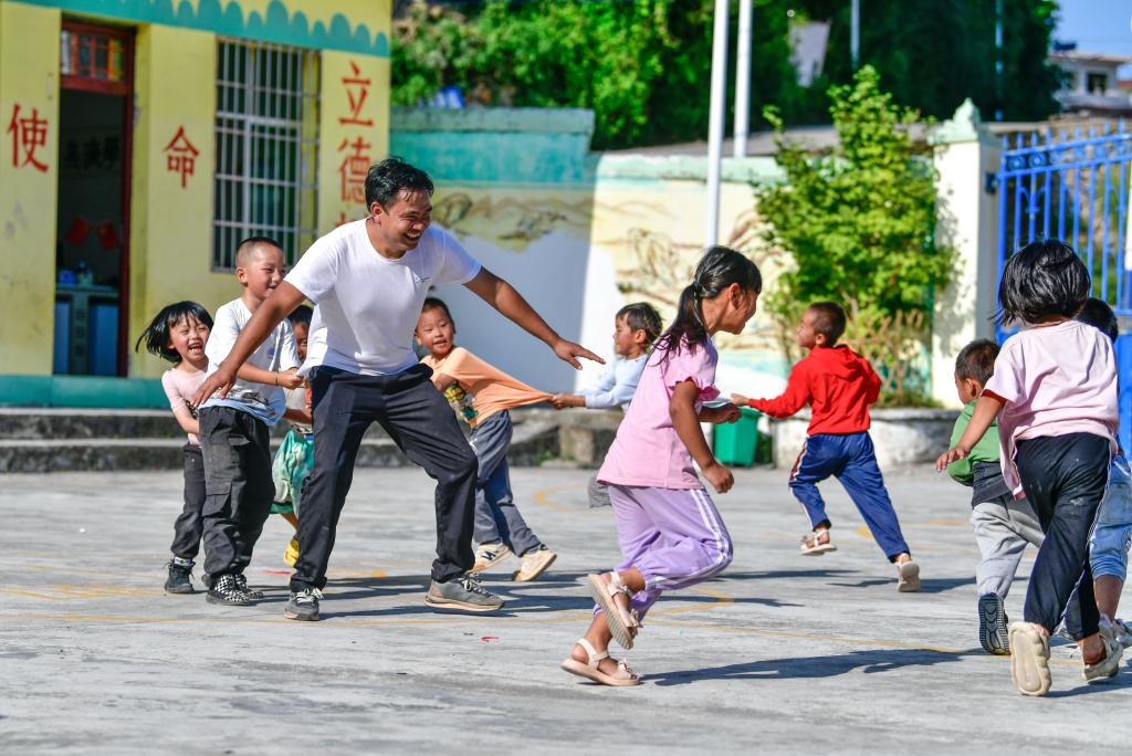 采访那天,阳光正好。被山里的太阳晒得黑黝黝的陆成文带着孩子们在操场上练习打篮球,玩老鹰捉小鸡游戏。笑声在校园里回荡,飘得很远、很远,我默默按下快门,记录下这里的快乐与童真,奉献与坚守。