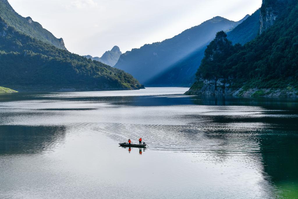 一人掌舵,一人撑船。那是一条神奇的小船,可摆渡、可撒网、亦可满载一船星辉。留一湾碧波,护大江东去,扮靓乌江百里画廊。