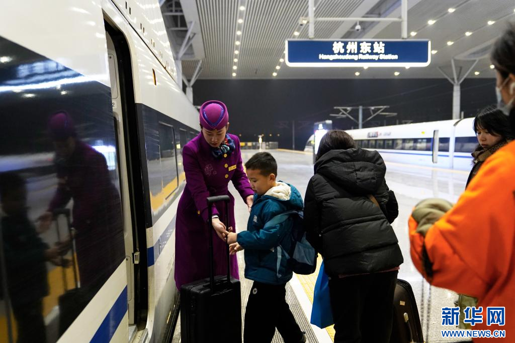 2月4日凌晨2时,由中国铁路成都局集团公司贵阳客运段担当值乘的G4923次“红眼高铁”载着1000余名旅客从杭州东站驶出,列车重联运行,途经浙江、江西、湖南,历时7小时后抵达贵阳北站。这趟“红眼高铁”是为了满足旅客出行需求而临时增加的动车组列车。春节前,贵阳客运段在客流较集中的上海、南京、杭州、深圳、重庆等方向共增开了20列“红眼高铁”。