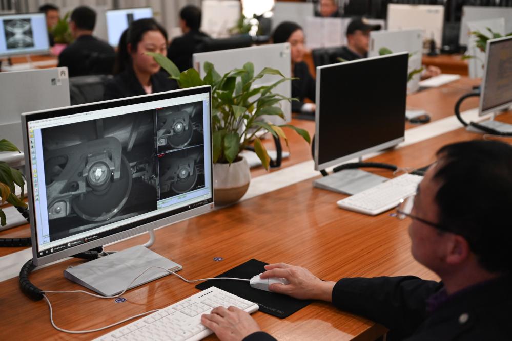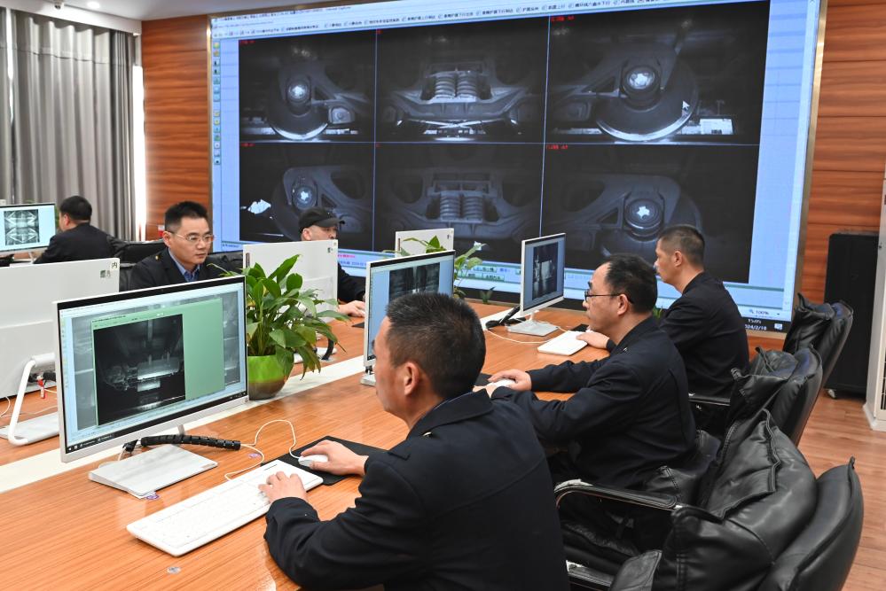 在中国铁路成都局集团有限公司贵阳南车辆段5T运用车间,铁路货车运行故障动态图像监测系统对通过铁轨线路的列车进行高速摄像,图片信息传回地面分析中心后,再由动态检车员查找研判列车故障和安全隐患。5T检车员们在春运期间每天要对约300列货车进行检测,查看约90万张照片,默默守护春运安全。