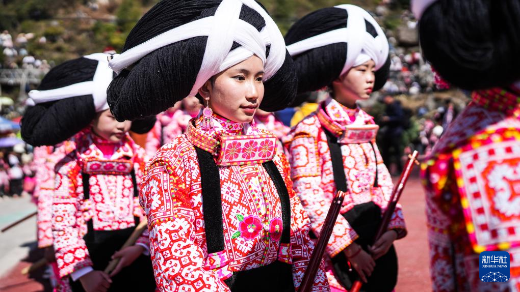2月19日,苗族群众在六枝特区梭戛苗族彝族回族乡高兴村跳花场表演舞蹈。新华社记者 陶亮 摄