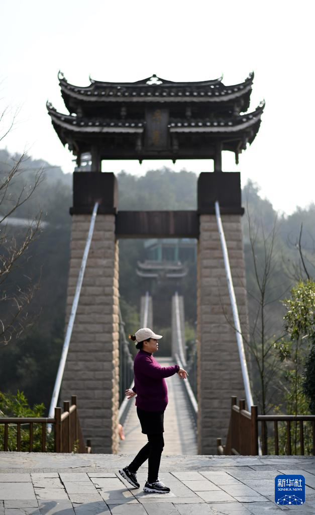 2月21日,游客在贵州省黔东南苗族侗族自治州丹寨县万达小镇景区游玩。新华社记者 杨楹 摄
