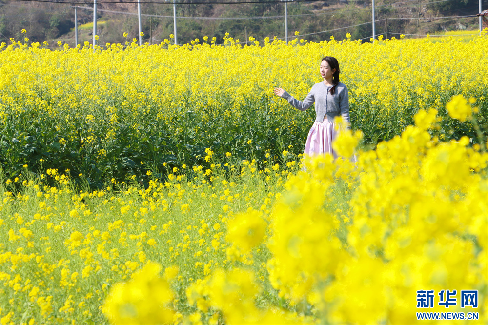 2月20日,游客在贵州省独山县下司镇三兴村的油菜花田赏花游玩。新华网发(张明坤 摄)