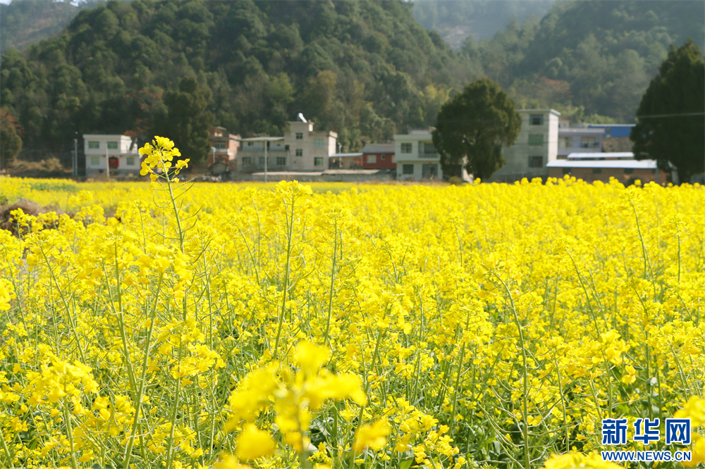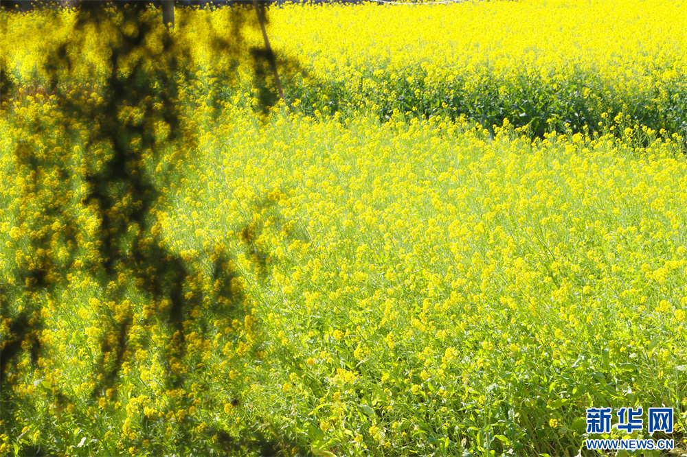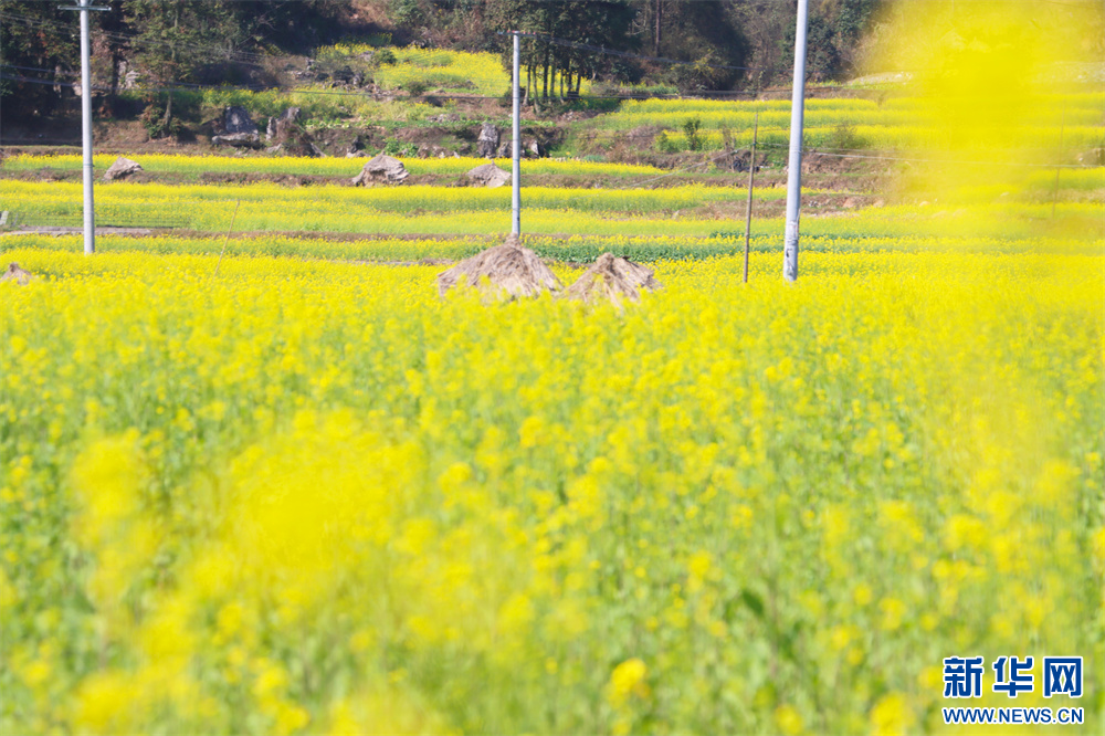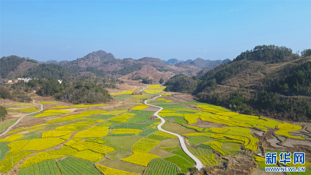 2月20日拍摄的贵州省独山县下司镇三兴村的油菜花田。新华网发(张明坤 摄)