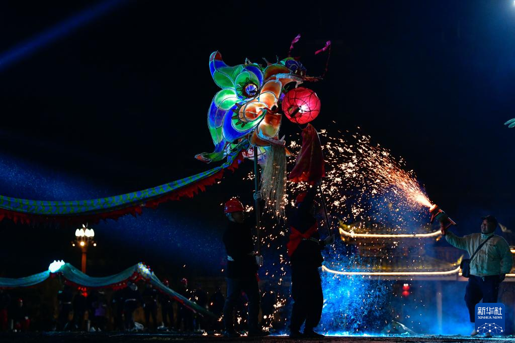 2月23日晚,人们在贵州省台江县参加苗族“舞龙嘘花”活动。新华社记者 杨文斌 摄
