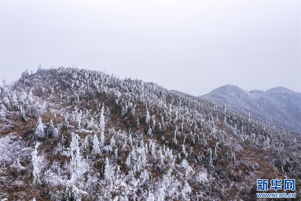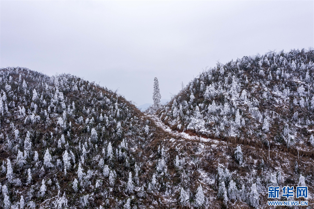 2月27日,在贵州省从江县丙妹镇党尚山拍摄的雾凇。新华网发(吴德军 摄)