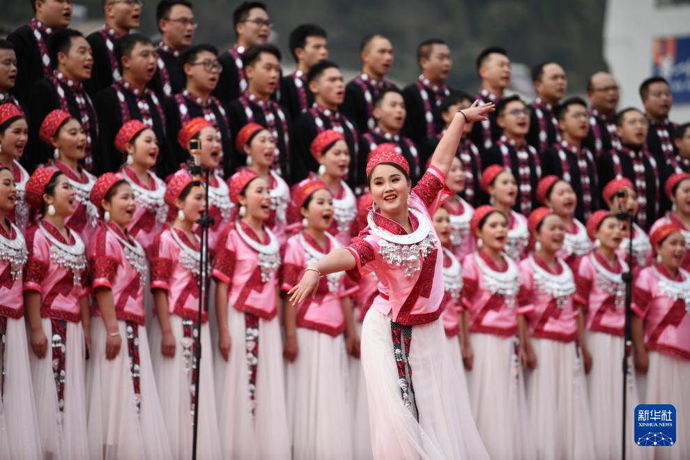 3月7日,人们在贵州省黔东南苗族侗族自治州黄平县文化广场参加合唱比赛。新华社发(王超 摄)