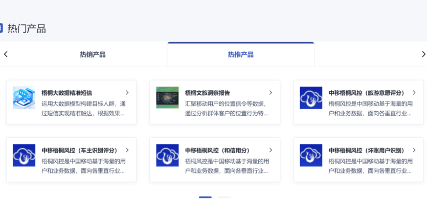 “移动数据专区”基于中国移动海量数据资源和平台丰富的大数据组件工具集,可支撑大数据与政府、金融、旅游、交通等多个领域的融合场景,具备客户覆盖广、使用频次高、场景关联性强等特点。目前专区首批挂牌上市的数据产品超百个,均为中国移动旗下“梧桐大数据”产品品牌,围绕风控大数据、洞察大数据、触达大数据、咨询服务及大数据工具五大产品线,打造系列优质大数据产品及解决方案,推动千行百业“用数赋智”。