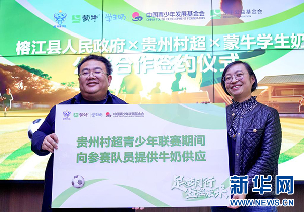 3月14日,内蒙古蒙牛公益基金会与榕江县慈善总会贵州“村超”公益项目合作协议签约现场。新华网发(王炳真 摄)