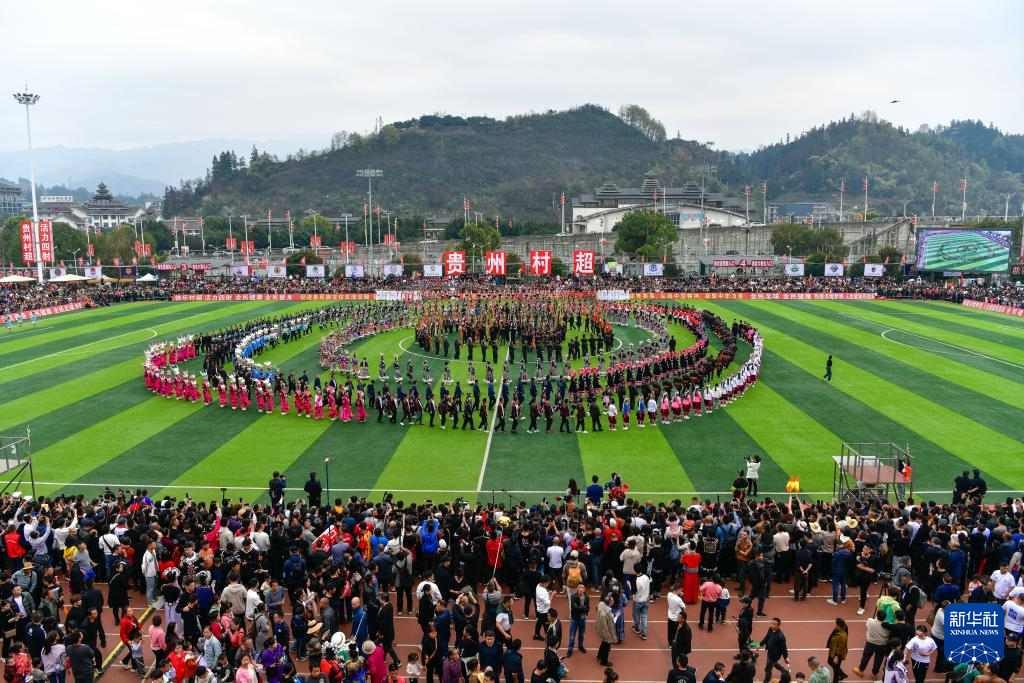 这是3月16日拍摄的“村超”总决赛开幕式现场(无人机照片)。新华社记者 杨文斌 摄