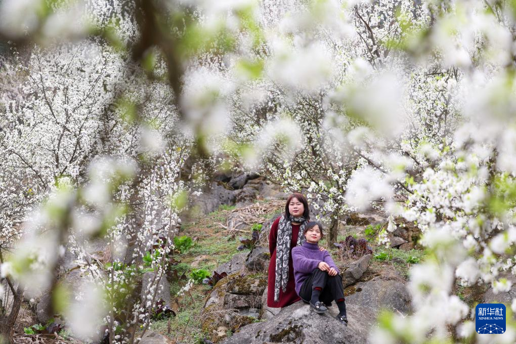 3月17日,市民在贵州省毕节市七星关区南山公园休闲赏花。新华社发(韩贤普摄)