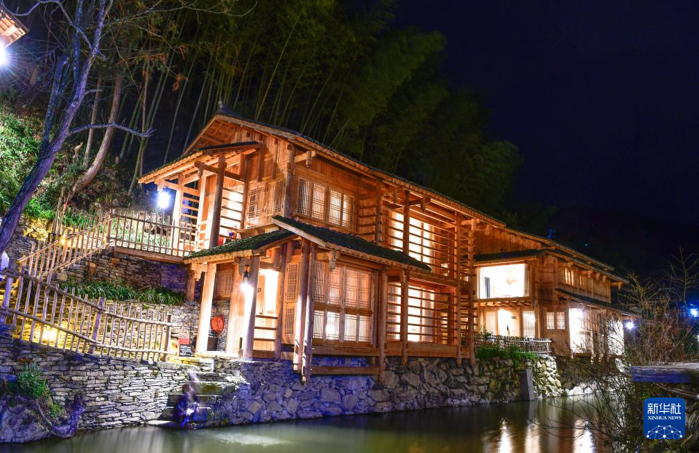 这是3月17日拍摄的贵州省榕江县栽麻镇大利侗寨月亮山居民宿夜景。新华社记者 杨文斌 摄