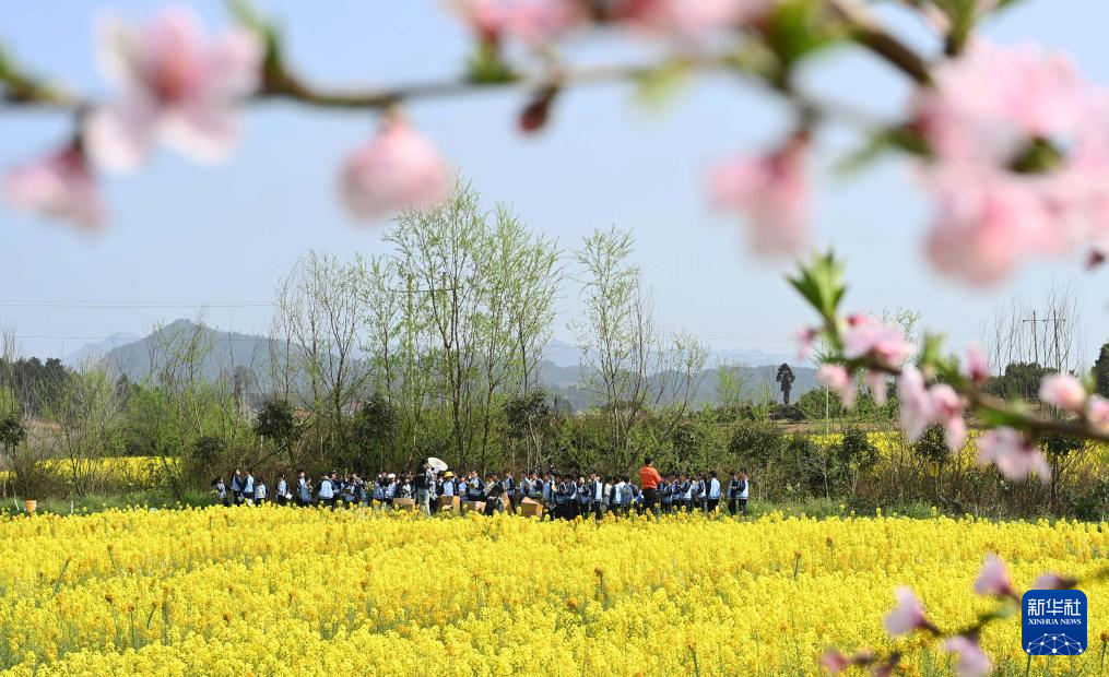 春日里,在贵州省遵义市绥阳县盛林生态农场,油菜花、桃花等花卉竞相绽放,吸引游人前来赏花游玩。