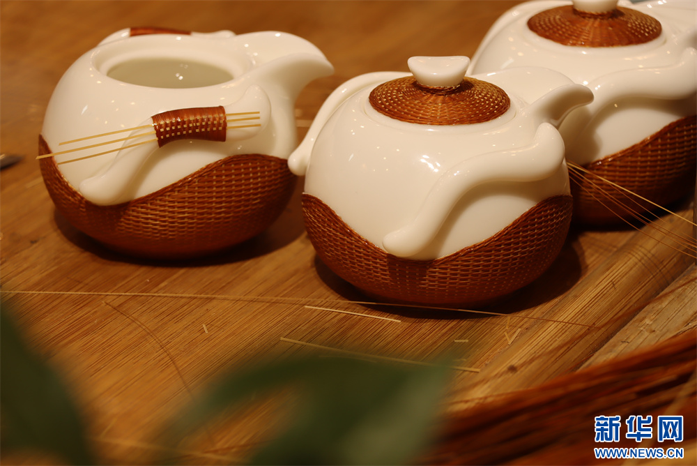 3月20日,在贵州省赤水市大同镇极竹堂非遗竹编产学研基地,竹编工艺品展示。新华网发(张浪摄)