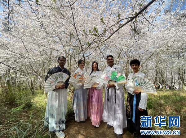 “山上层层桃李花,云间烟火是人家”“人间四月芳菲尽,山寺桃花始盛开”,来自孟加拉国的留学生王一山(Das Eshan)正沉醉在古诗词的意境之中,“这片樱花花海,景色特别漂亮,诗词中描述的美感,真实地呈现在我们面前。”王一山感慨道。