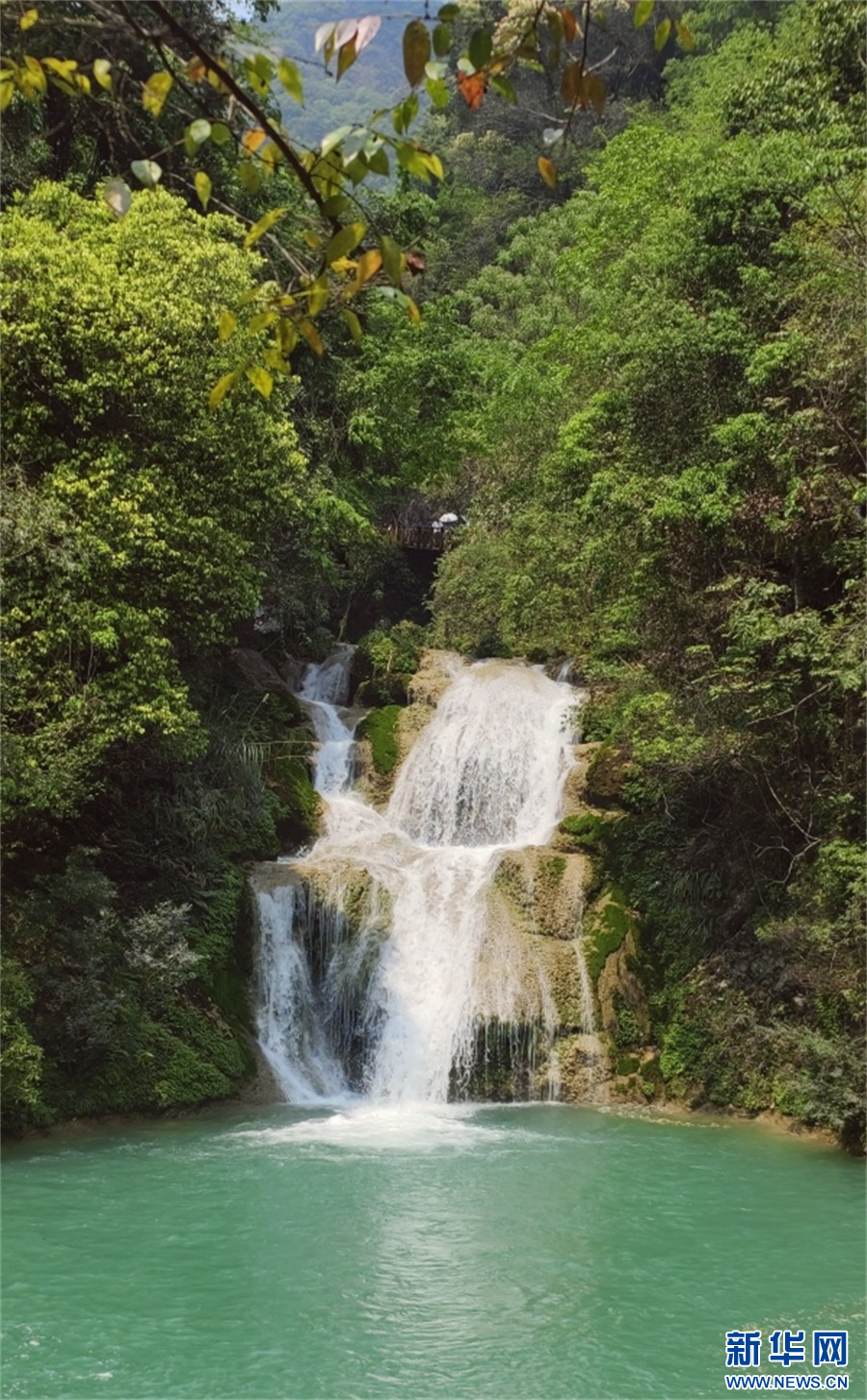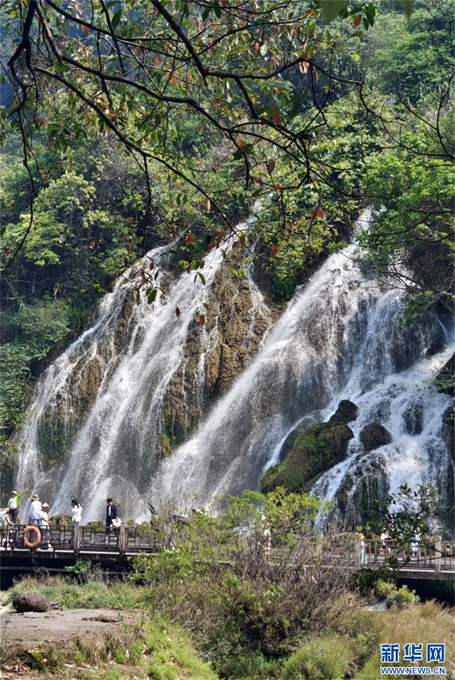 小七孔景区的瀑布(4月3日摄)。新华网 邓娴 摄