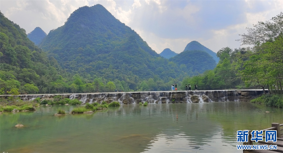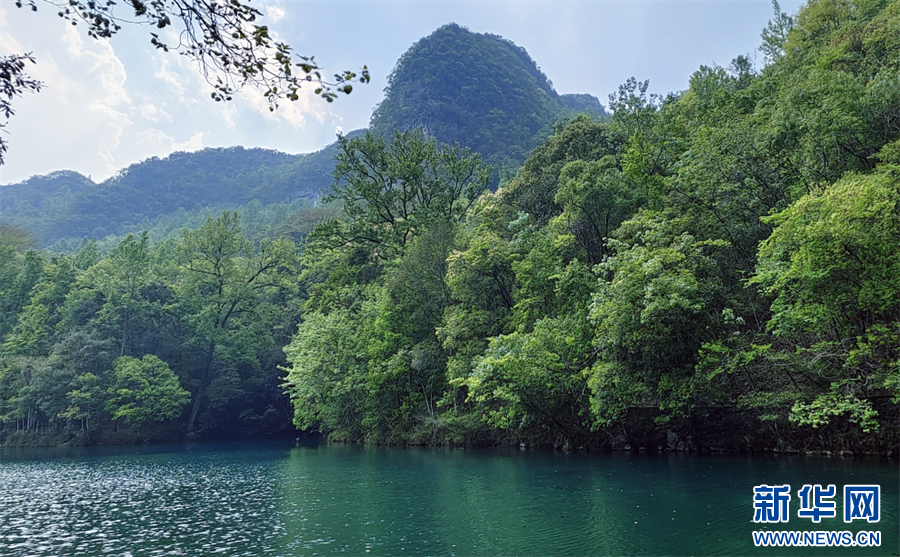 4月3日,小七孔景区青山叠翠、碧波荡漾。新华网 邓娴 摄