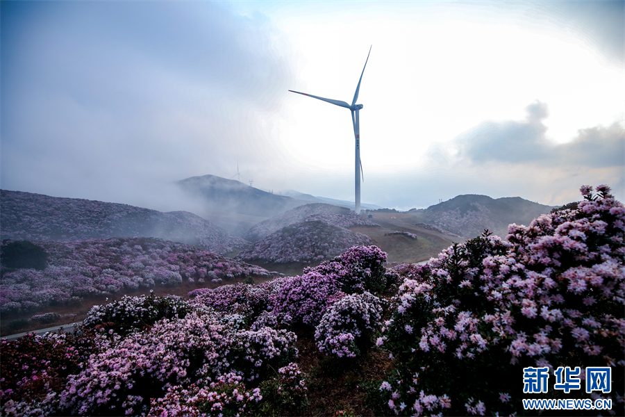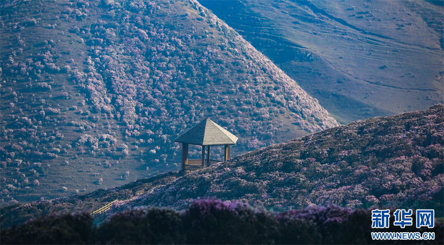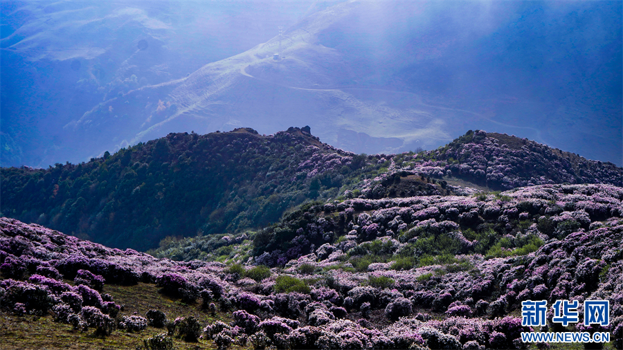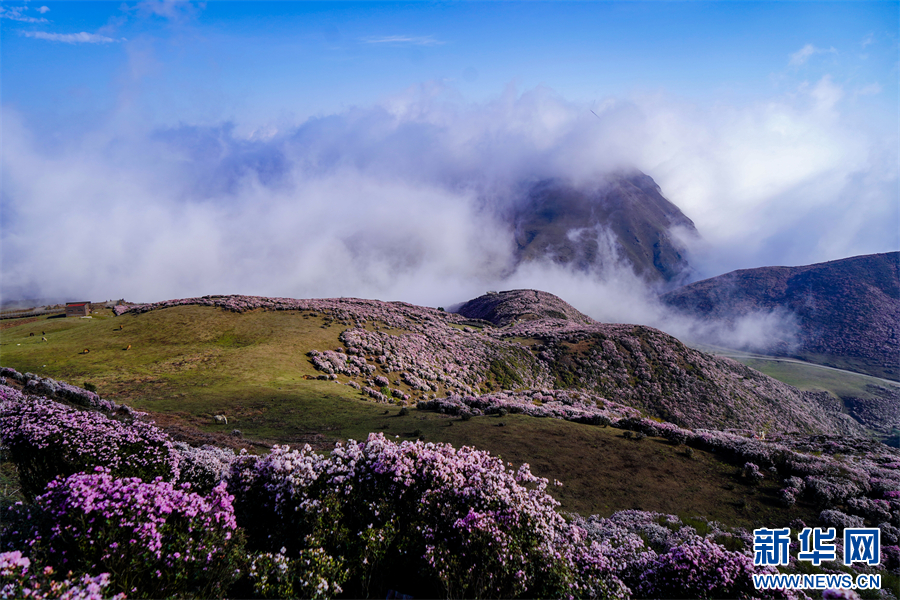 乌蒙大草原盛开的高原矮杜鹃(4月5日摄)。新华网发(赵桦 摄)