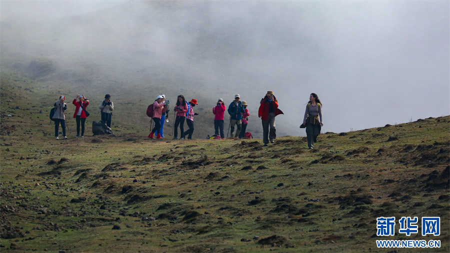 4月5日,登山爱好者在乌蒙大草原。新华网发(赵桦 摄)