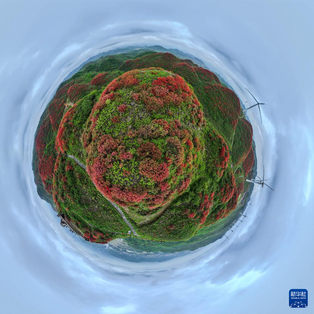 4月21日在贵州省遵义市播州区洪关苗族乡太阳坪景区拍摄的漫山遍野的杜鹃花(无人机全景照片)。新华社发(罗星汉摄)