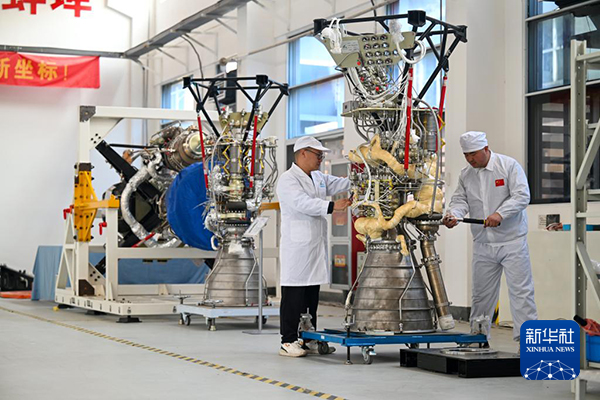 2024年3月11日,在安徽九州云箭航天技术有限公司生产基地,技术人员对即将交付的液体火箭发动机进行最后的检查。新华社发(黄洋洋 摄)