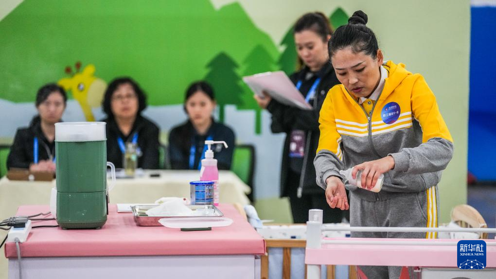 这是5月8日拍摄的第二届全国乡村振兴职业技能大赛育婴项目比赛现场。新华社记者 刘续 摄