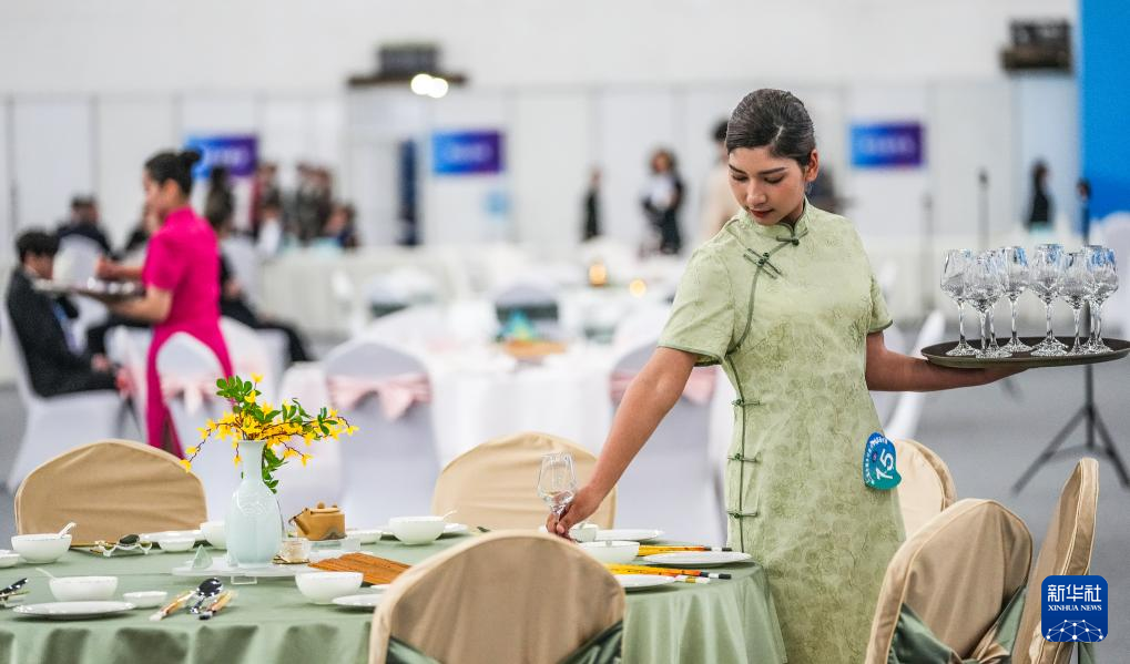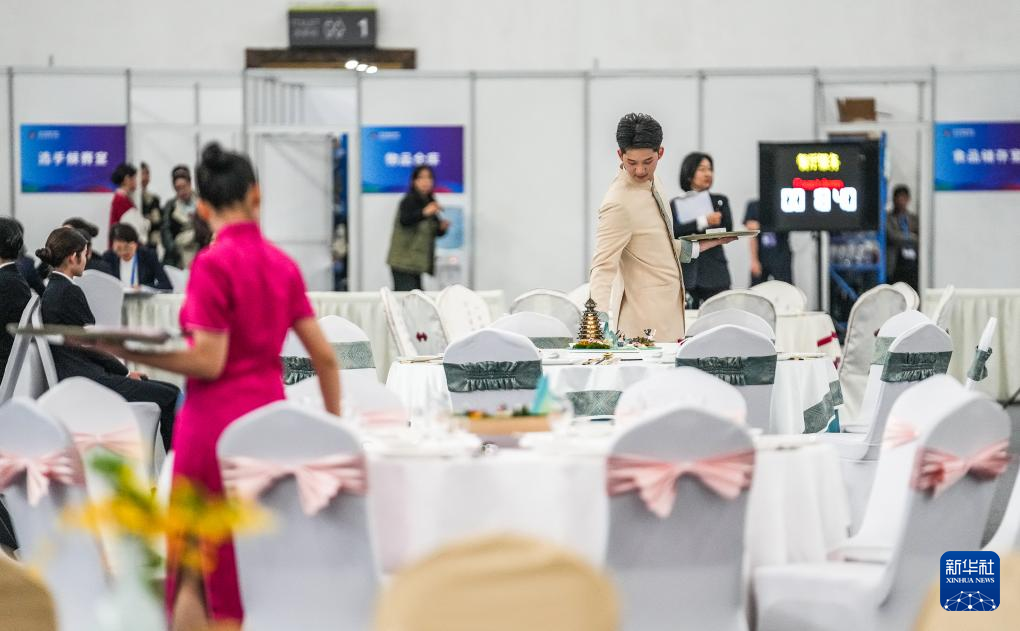 这是5月8日拍摄的第二届全国乡村振兴职业技能大赛餐厅服务项目比赛现场。新华社记者 陶亮 摄