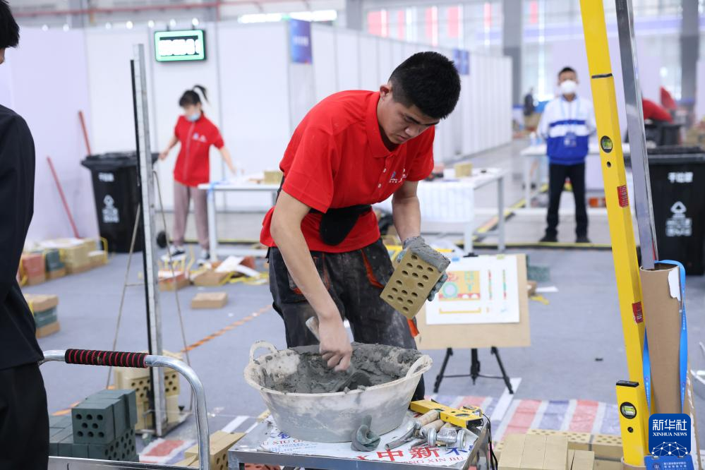 这是5月8日拍摄的第二届全国乡村振兴职业技能大赛砌筑项目比赛现场。新华社记者 陶亮 摄