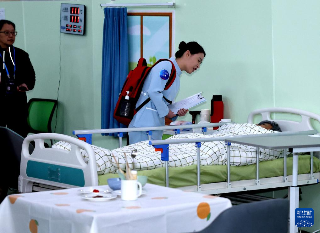 这是5月8日拍摄的第二届全国乡村振兴职业技能大赛养老护理项目比赛现场。新华社记者 刘续 摄
