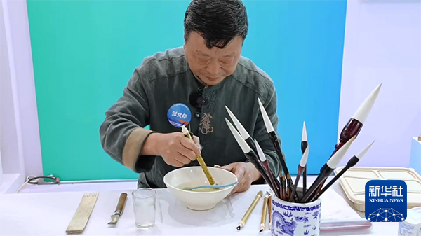 工欲善其事,必先利其器,要想练好字,就得选对笔。近日,在第二届全国乡村振兴职业技能大赛的会场,宣笔制作技艺国家级非遗传承人、来自安徽省宣城市的张文年正在推广宣笔。张文年介绍,“千万毛中选一毫”,一支毛笔,从选毫到成品要经过上百道工艺,考验制笔人的耐心和细心。