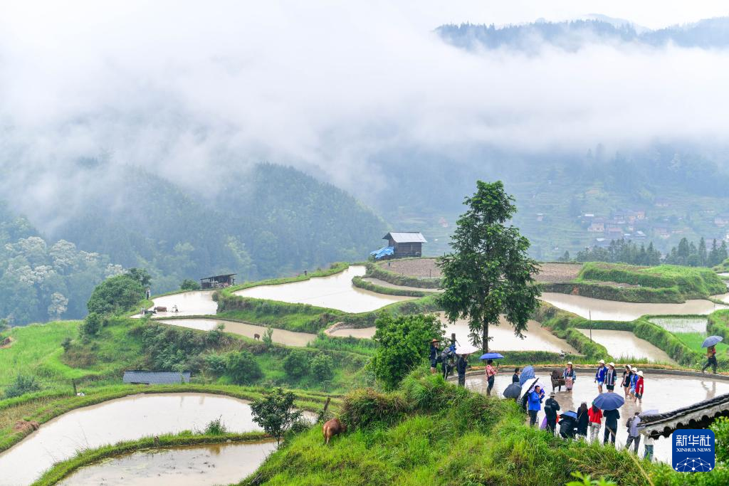 5月18日,在贵州省黎平县尚重镇洋洞村,游客在观看传统牛耕活动展示。新华社记者 杨文斌 摄