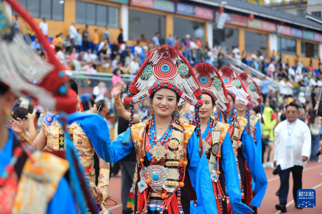 6月10日,演员在比赛间隙表演萨迦索舞。新华社记者 刘续 摄