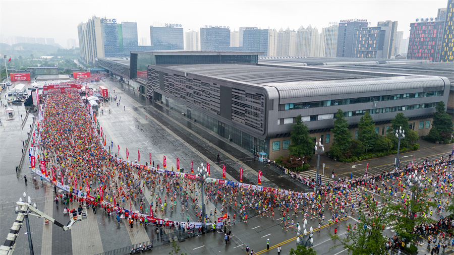 航拍2024贵阳马拉松赛现场。新华网发(龙建睿 摄)
