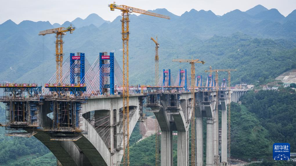 这是建设中的六枝特大桥桥墩(6月17日摄)。新华社记者 陶亮 摄
