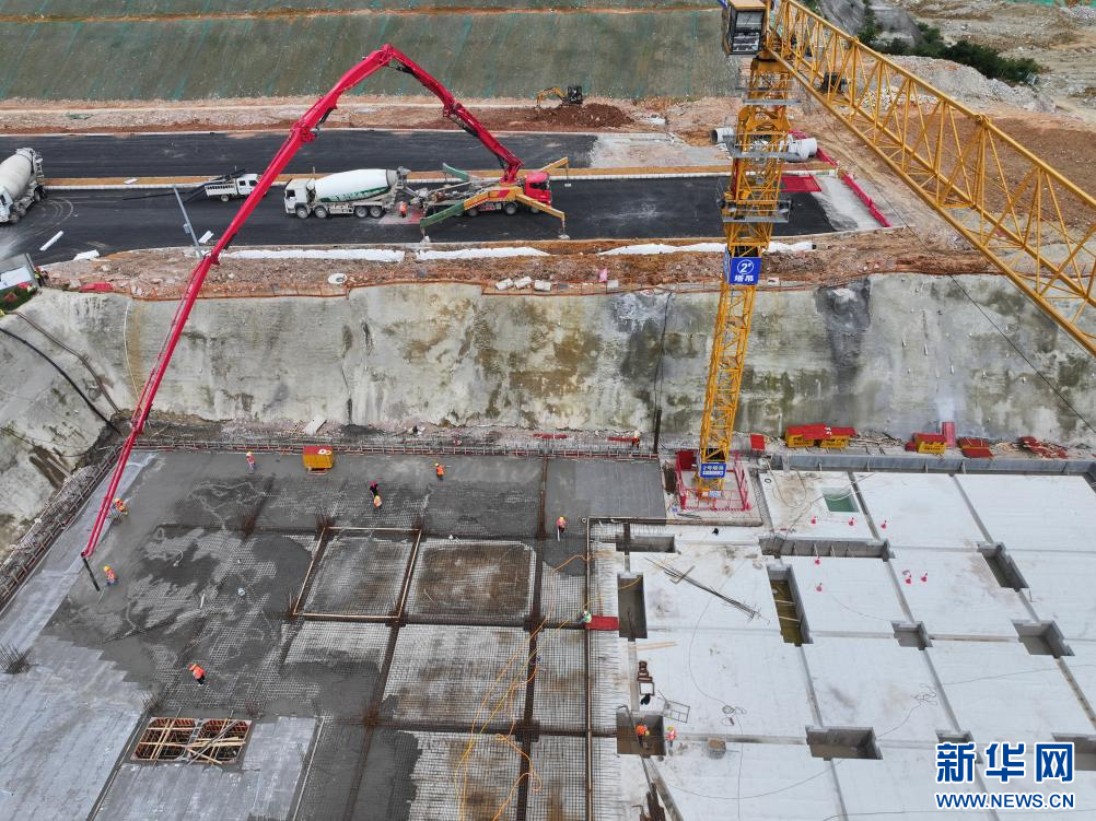6月21日,工作人员正在浇筑底板。新华网发(任梅 摄)
