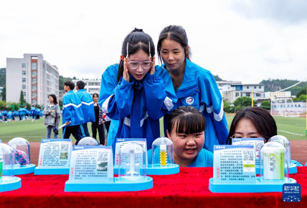 6月25日,学生在贵州省贵阳市乌当区新九学校毒品预防教育基地参观。新华社发(袁福洪 摄)