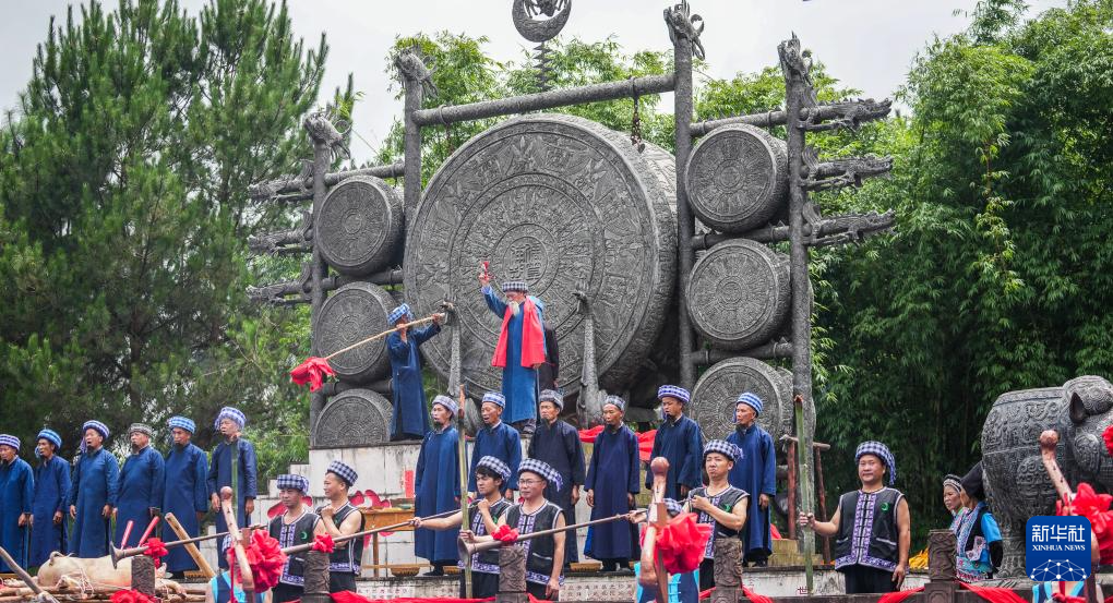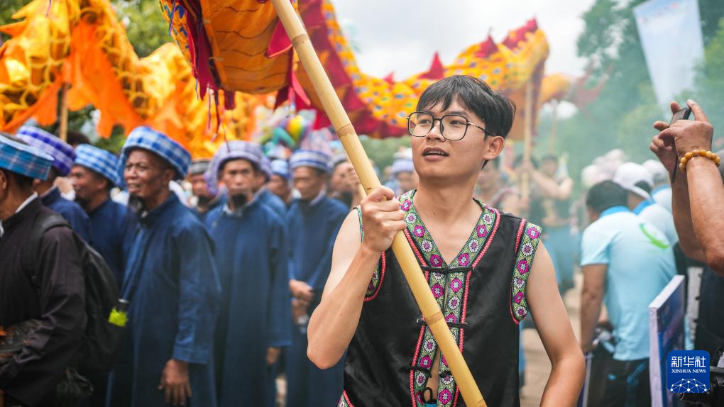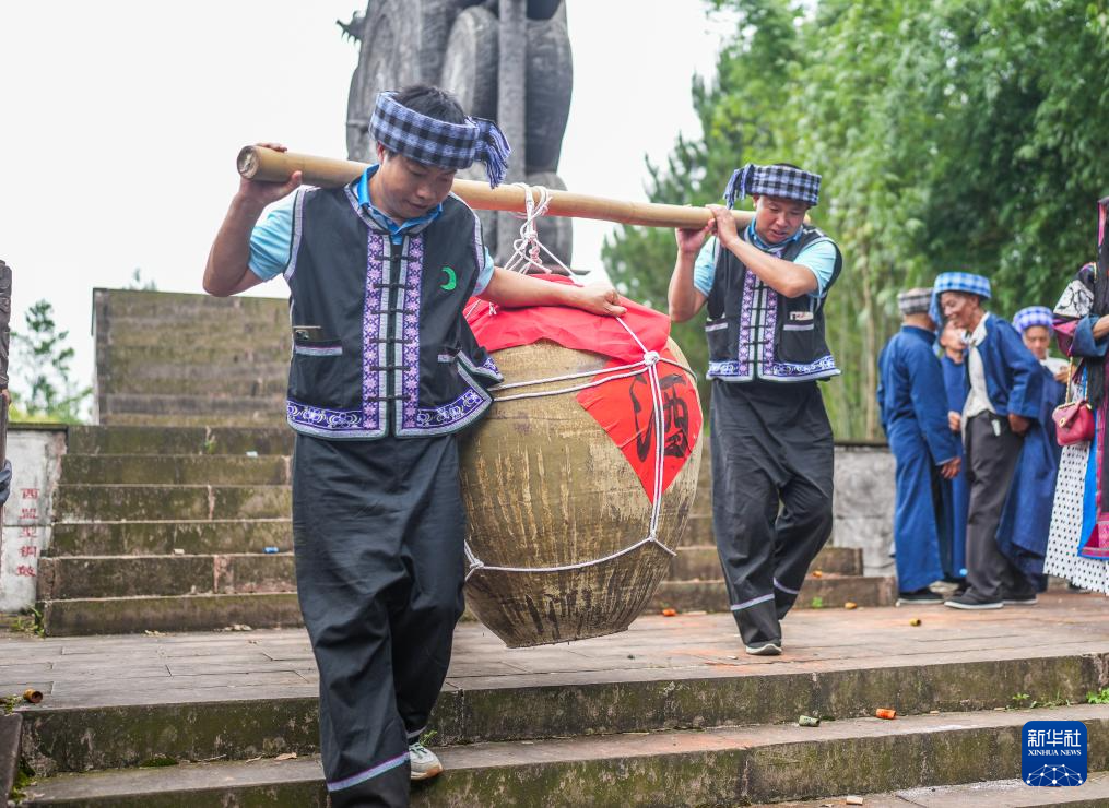 7月11日,当地群众在六盘水市六枝特区月亮河畔参加传统民俗活动。新华社记者 陶亮 摄