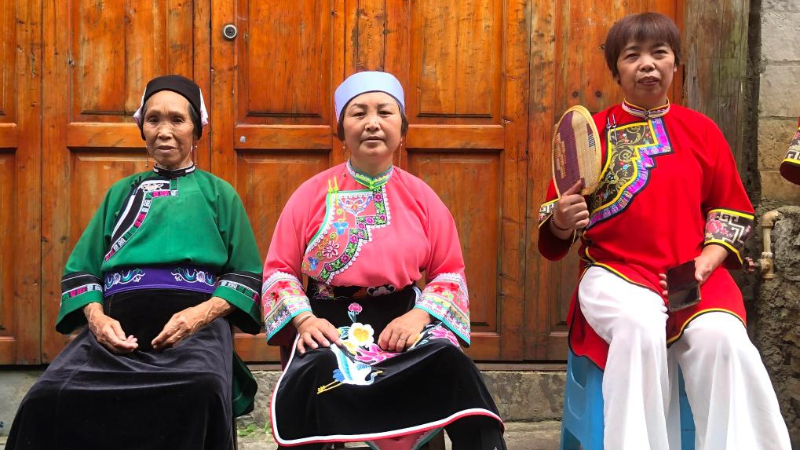 旧州古镇妇女穿着传统服饰凤阳汉装。新华社记者 李凡 摄