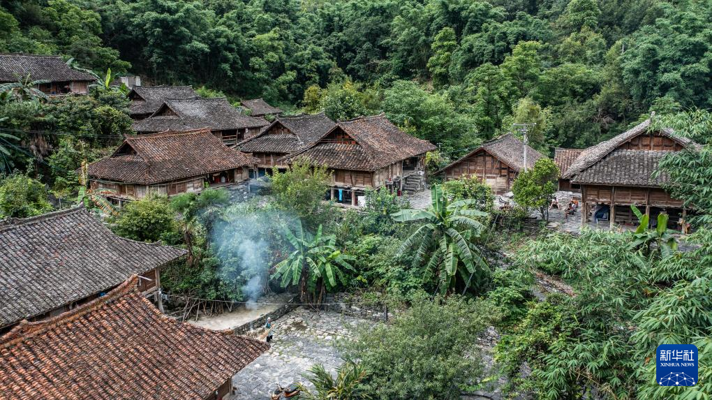 天门村村民在吊脚楼生产生活(7月16日摄)。新华社记者 陶亮 摄