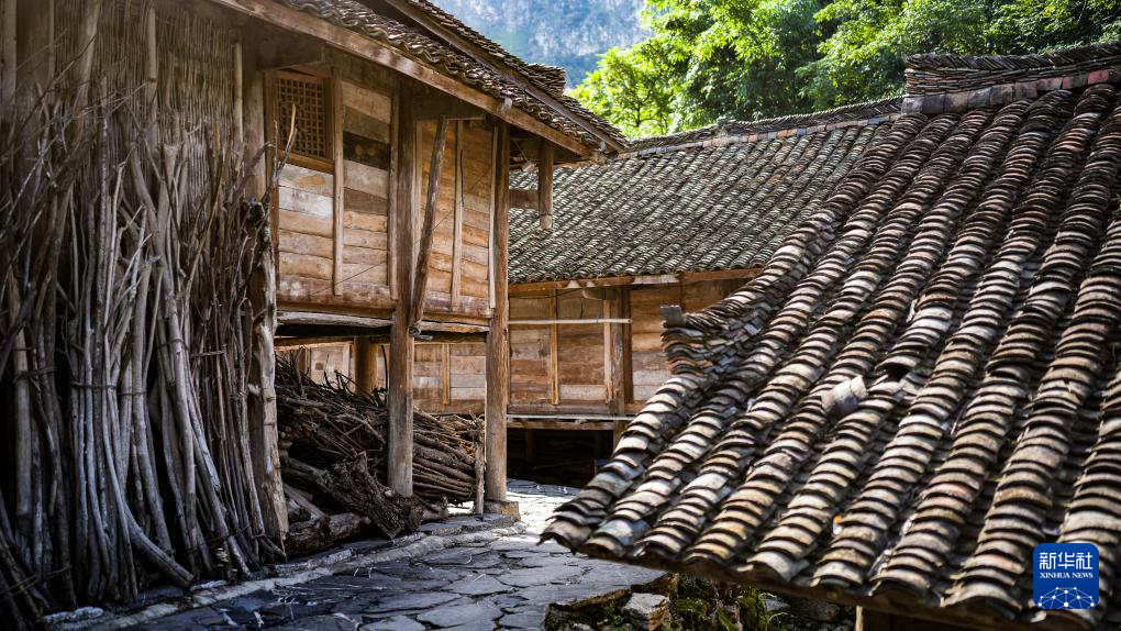 天门村大寨组传统布依族木瓦结构吊脚楼一隅(7月16日摄)。新华社记者 陶亮 摄