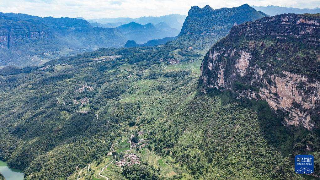 被群山围绕的天门村(7月17日摄,无人机照片)。新华社记者 陶亮 摄