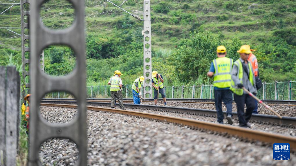 8月6日,工人在沪昆铁路贵州段整理线路。新华社记者 陶亮 摄